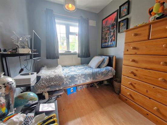 Single bedroom with UPVC double-glazed window, single radiator, TV point and laminate flooring.