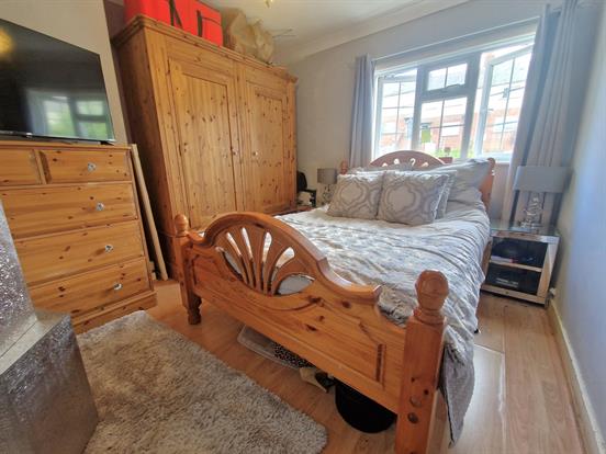 Double bedroom with coving, UPVC double-glazed window, single radiator, TV point and laminate flooring.