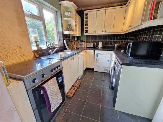 Spotlights, UPVC double-glazed window, shaker style wall and base units, Ideal boiler and space for a slimline dishwasher, space for a washing machine, space for electric cooker, partially tiled walls and tiled flooring.