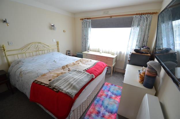 Bedroom with UPVC double glazed window to front elevation, ceiling light point and carpeted flooring.