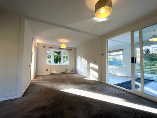 Living/Dining Room: A spacious 'L' shaped living/dining room with two upvc double glazed windows, upvc double glazed patio doors leading to the second living room, radiator, electric heater, TV socket and newly fitted carpeted flooring.