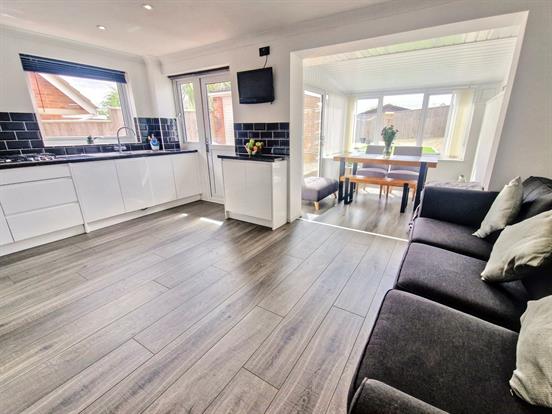 Dining Room: Upvc double glazed windows to side, upvc double glazed window to front, upvc double glazed sliding doors leading out to rear garden and wood effect flooring.
