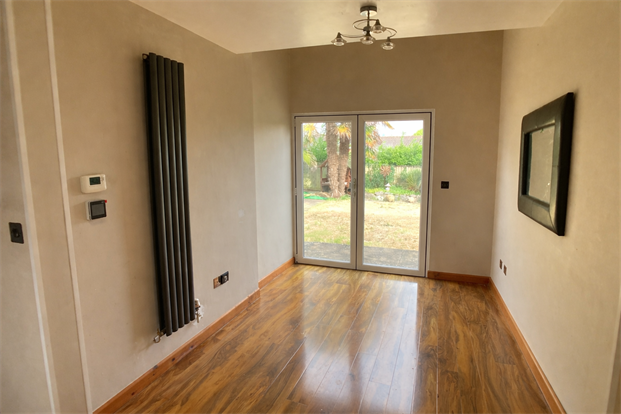 Space for a 6 seater, uPVC French doors lead to the rear garden, laid to laminate flooring.