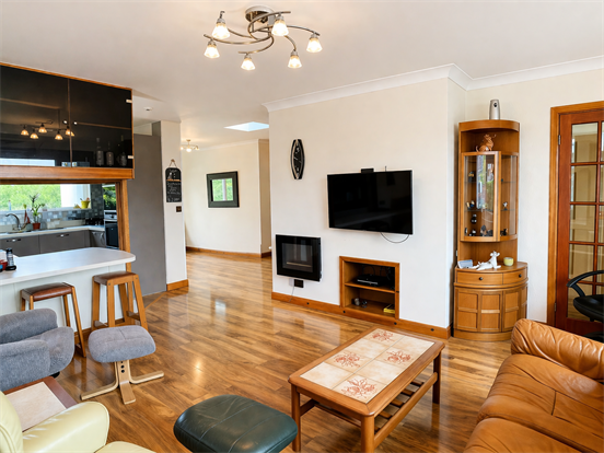 Extended over the years, the property offers spacious and versatile accommodation, perfectly suited to modern family living. At its heart lies a superb open-plan living, dining and kitchen area, creating a bright and sociable space ideal for both everyday life and entertaining.