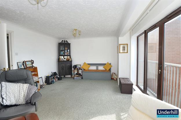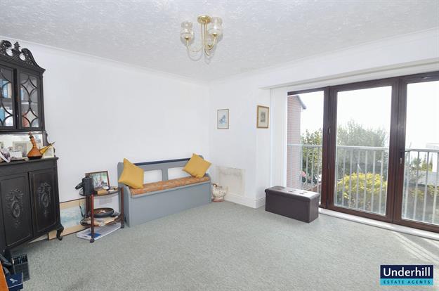 Living / Dining Room:A bright and spacious room filled with natural light, thanks to sea-facing windows with a Juliet balcony. A further window to the south adds to the airy feel. The room is carpeted and features a free-standing electric heater.