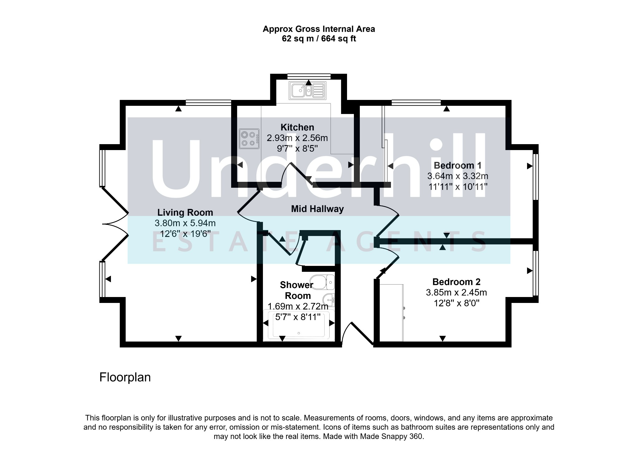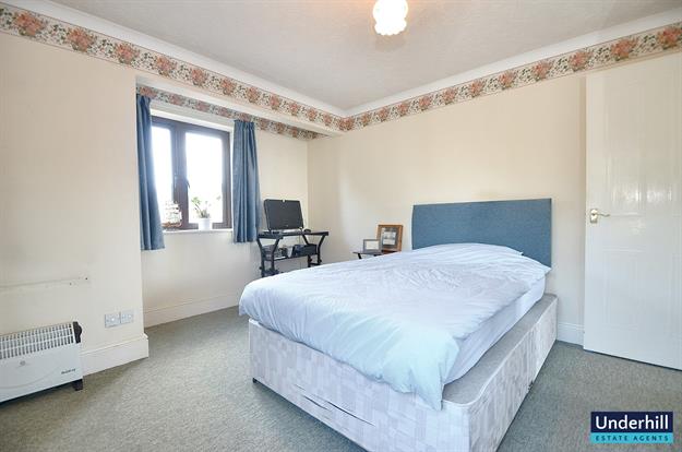 Bedroom 2:Slightly smaller than Bedroom 1 but still able to accommodate a double bed. It includes a fitted mirrored wardrobe, a front-facing window, wall-mounted radiator, and carpet flooring.