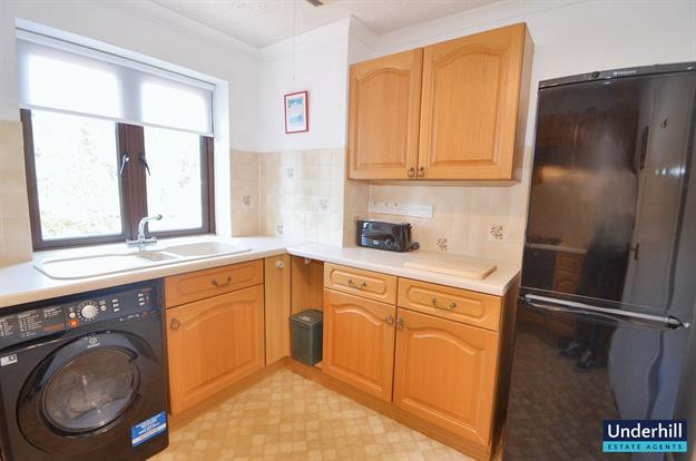 Kitchen:Fitted with a range of base and wall units, the kitchen includes an integrated electric oven, hob, and extractor fan. There is plumbing for a washing machine, as well as space for a fridge-freezer. A one-and-a-half inset off-white sink sits beneath a side window, complemented by roll-top work surfaces. The room also benefits from a kick board electric heater and vinyl flooring.