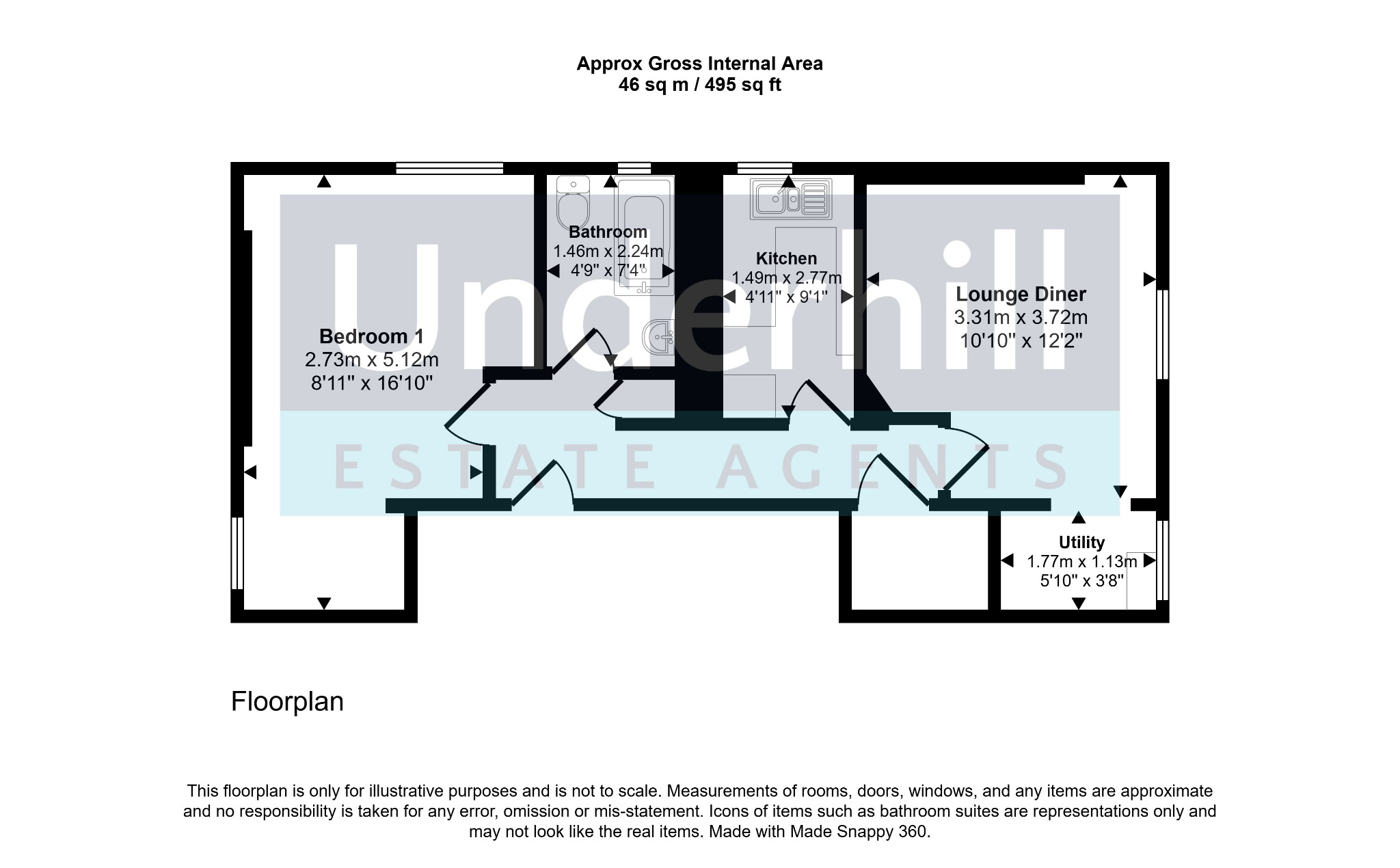 Bedroom:A generous double room with a large side-facing window allows for ample natural light. A small adjoining dressing room or storage area features a large window to the side and houses the gas boiler, offering excellent additional storage or dressing space.