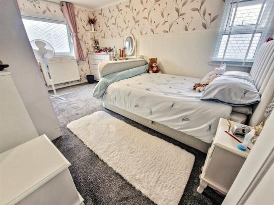Double bedroom with UPVC double glazed window, single radiator and carpeted flooring.