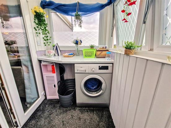 UPVC double glazed door and window, space for washing machine and tumble dryer, and carpeted flooring. Double doors leading to: