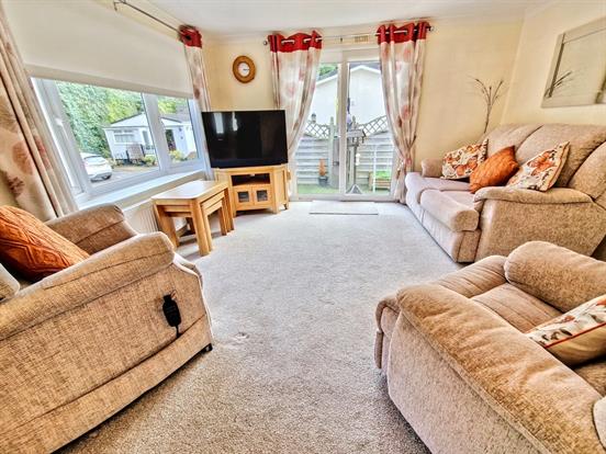 Exterior: Opposite the property is an allocated parking space as well as numerous visitor spaces. As with all park homes, there is complete access around the property, 3 sides of which are laid with patio slabs. The main garden is to the side of the property and is laid with artificial turf and has plenty of space for outdoor furniture. There is also a wooden shed for additional storage, as well as a wooden fence which provides privacy from the neighbours.