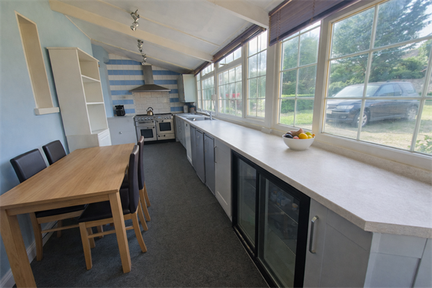 The main house provides generous living space with five well-proportioned bedrooms and two reception rooms, making it an ideal family home or a property with scope for mixed residential and business use. The accommodation offers flexible living arrangements with ample room for modern family life.