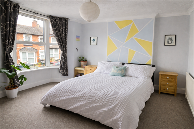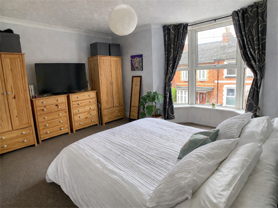 Bedroom 1: The largest bedroom in the property features a large bay uPVC window to the front. There is plenty of space for a king-size bed and additional furniture, radiator and carpeted flooring.