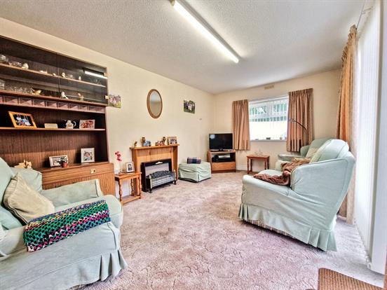 Living Room: Two upvc double glazed windows and door to rear garden, wall mounted electric heater, electric fire with wooden surround, TV socket, telephone socket and carpeted flooring.
