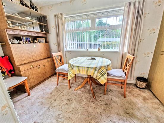 Dining Room: Upvc double glazed window, wall mounted electric heater, telephone point, storage cupboards and carpeted flooring.