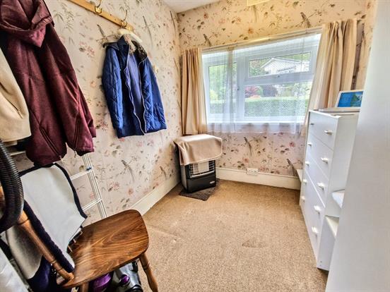 Bedroom Three: Single bedroom or home office with UPVC double glazed window and carpeted flooring.