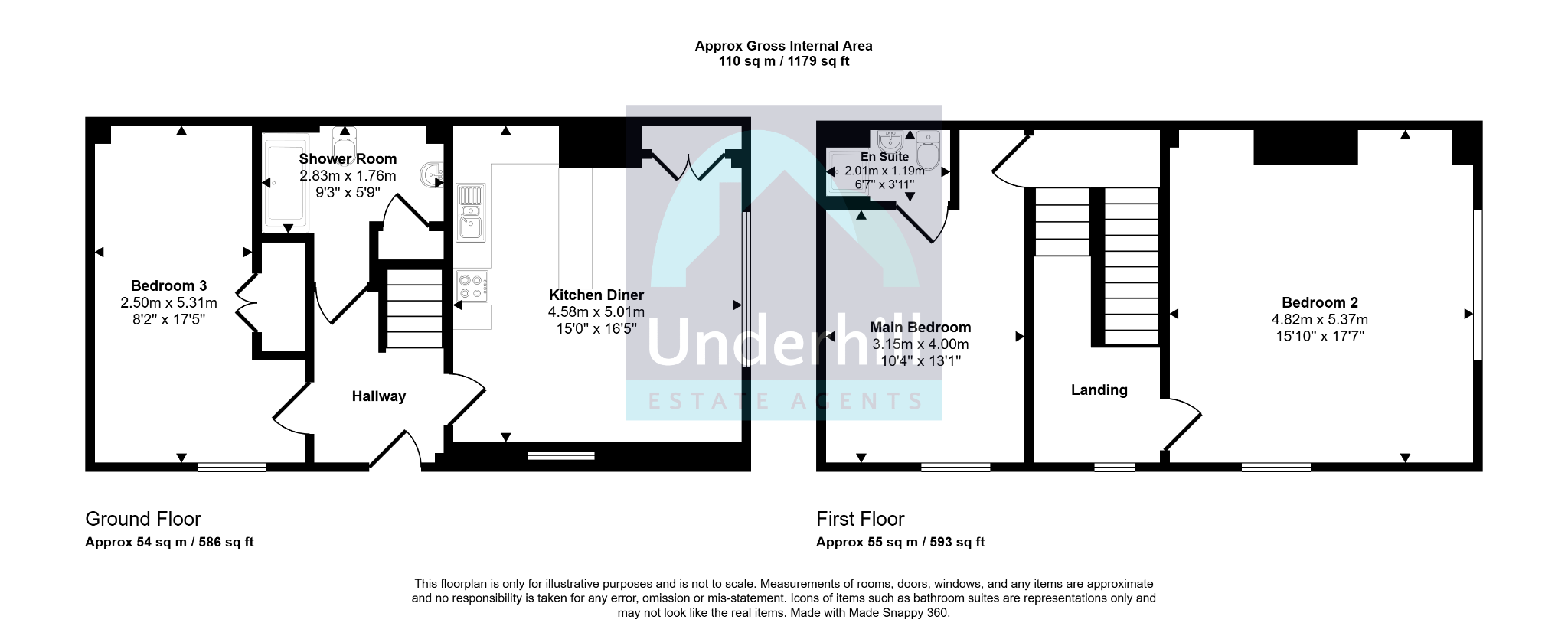 Entrance: A front door with decorative window arch above leads into the Entrance Hall with high ceilings, luxury vinyl tiled flooring, wall mounted radiator, wall mounted coat hooks, dado rail, doors to kitchen/diner, bedroom two, ground floor bathroom and stairs rise to first floor.