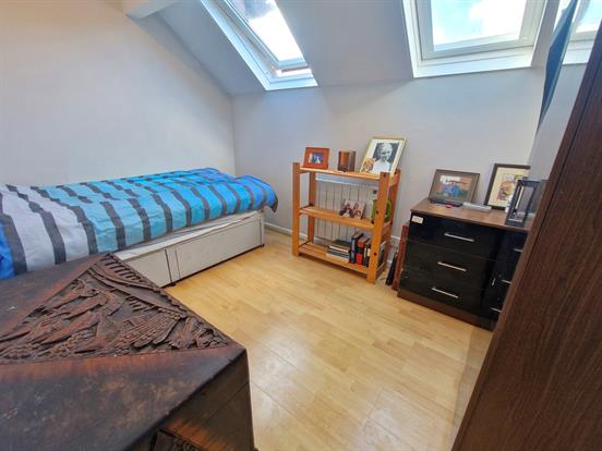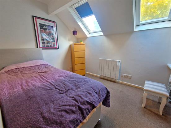 Access to bedrooms, bathroom and loft, Dimplex night storage heater and carpeted flooring.