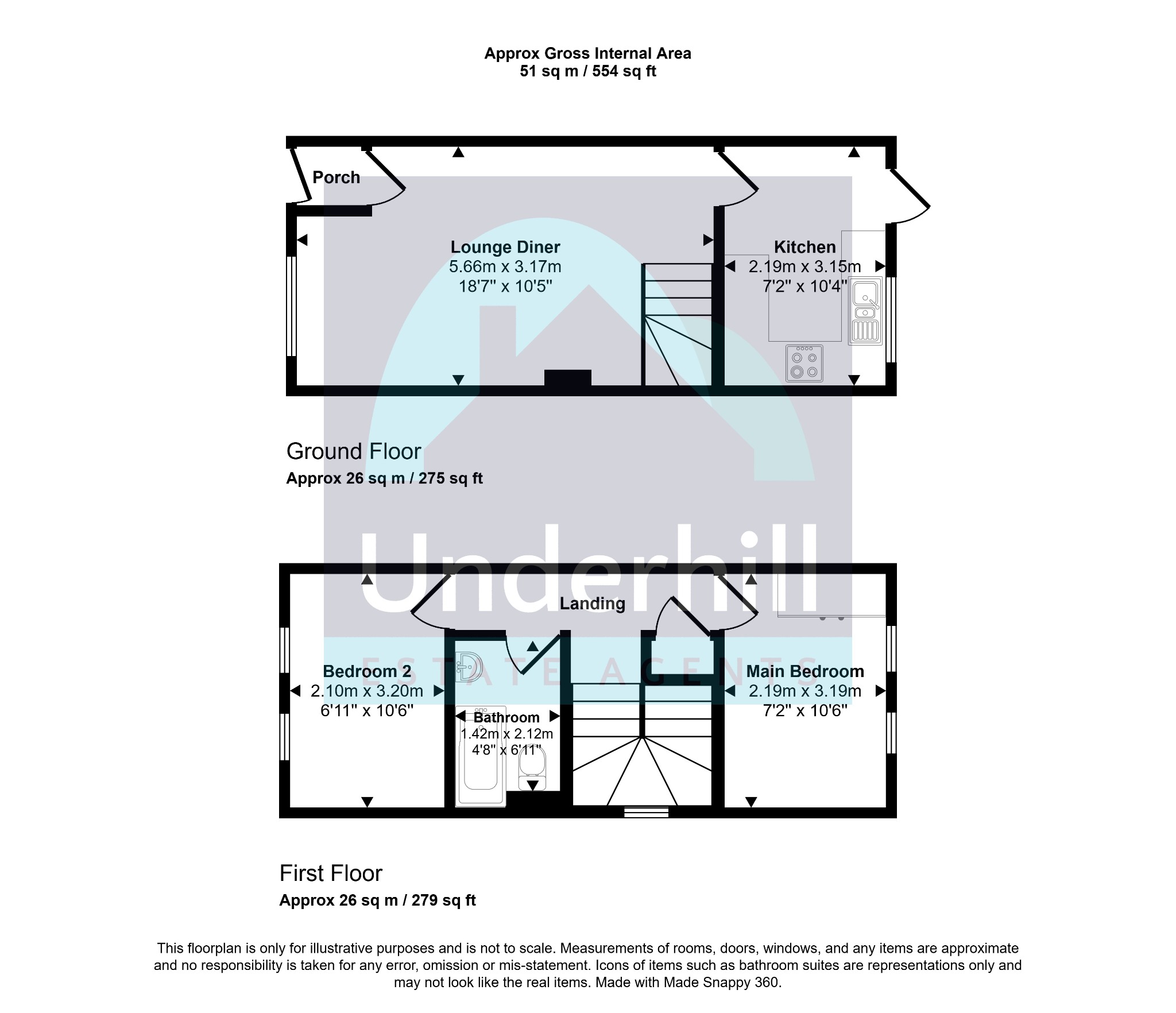 Lounge/Diner: Coving, two ceiling lights, upvc double glazed window, two wall mounted programmable electric heaters, under stair storage area and laminate flooring. Stairs rising to first floor accommodation and glazed door leading to kitchen.