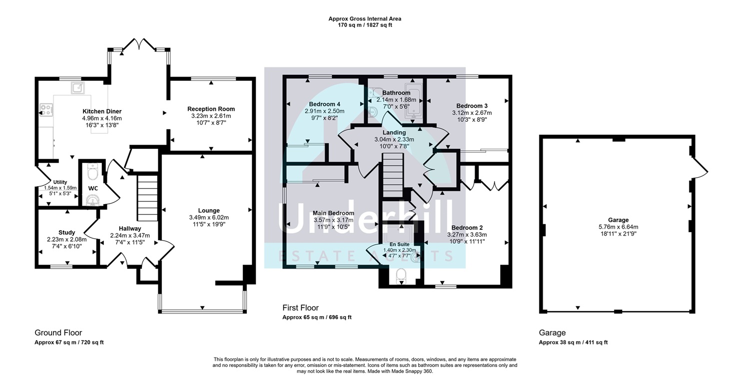 Utility Area: Downlights, upvc double glazed obscured glass door to rear garden, single radiator, a range of white gloss wall and base units, square edge worktops, integrated washing machine and wood effect flooring.
