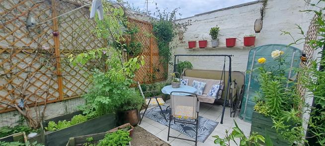 To the rear of the property is an enclosed courtyard garden with a raised flower border, and outside water tap. The courtyard has a ceramic tiled floor immediately outside the kitchen, where a sun room was once situated.
