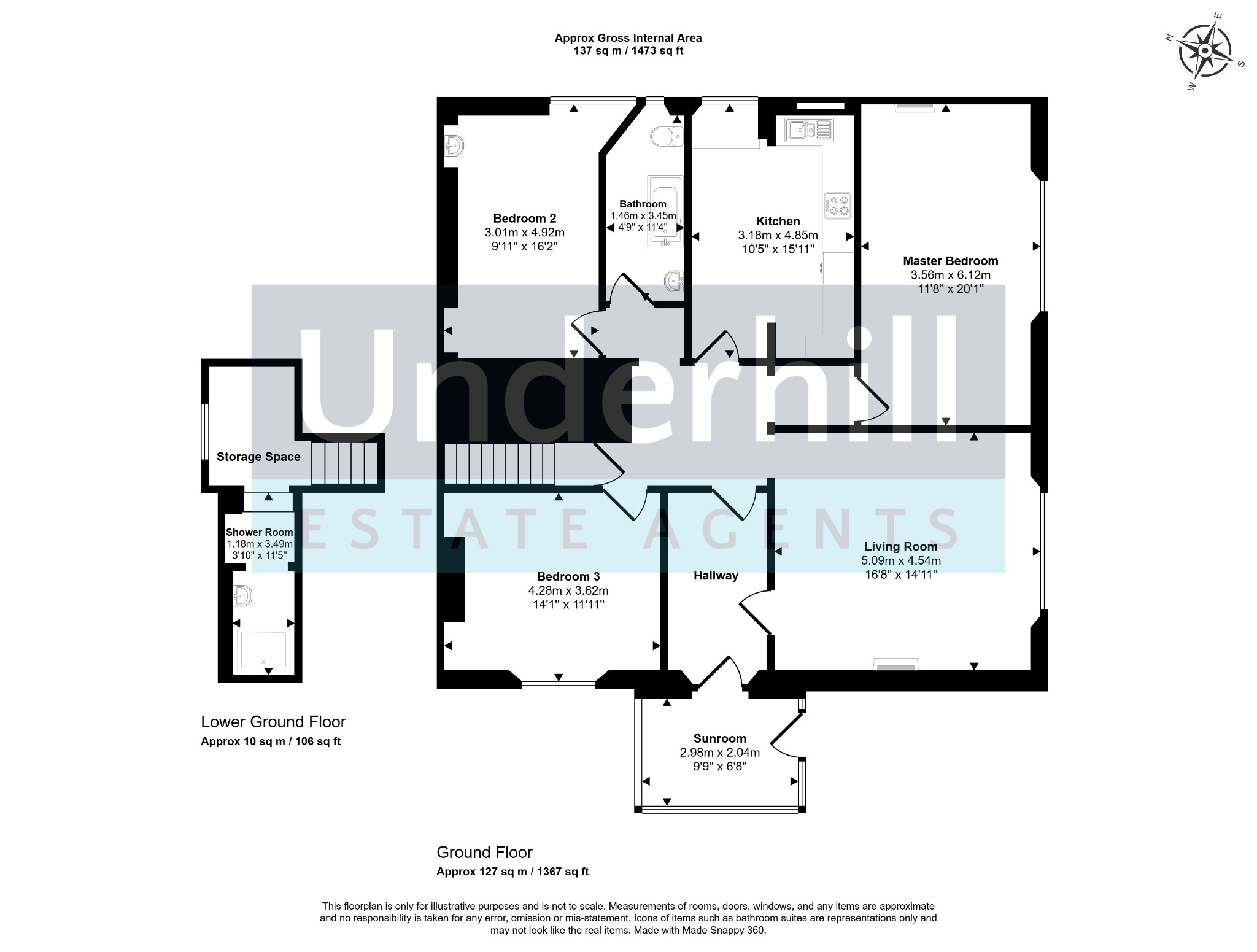 Accessed via its own private exterior staircase, this charming Georgian flat welcomes you into a bright sunroom, adorned with wrap-around windows that flood the space with natural light—ideal for a cosy seating area or practical storage. The sun room leads into: