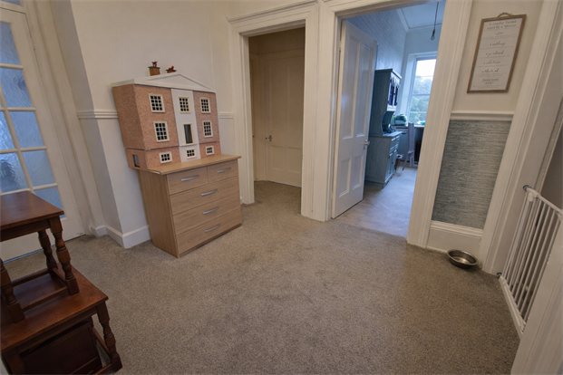 The hallway acts as a secondary entry space to the property. It provides acces to the living room and the main landing beyond. There is adequate space for further storage, leading to: