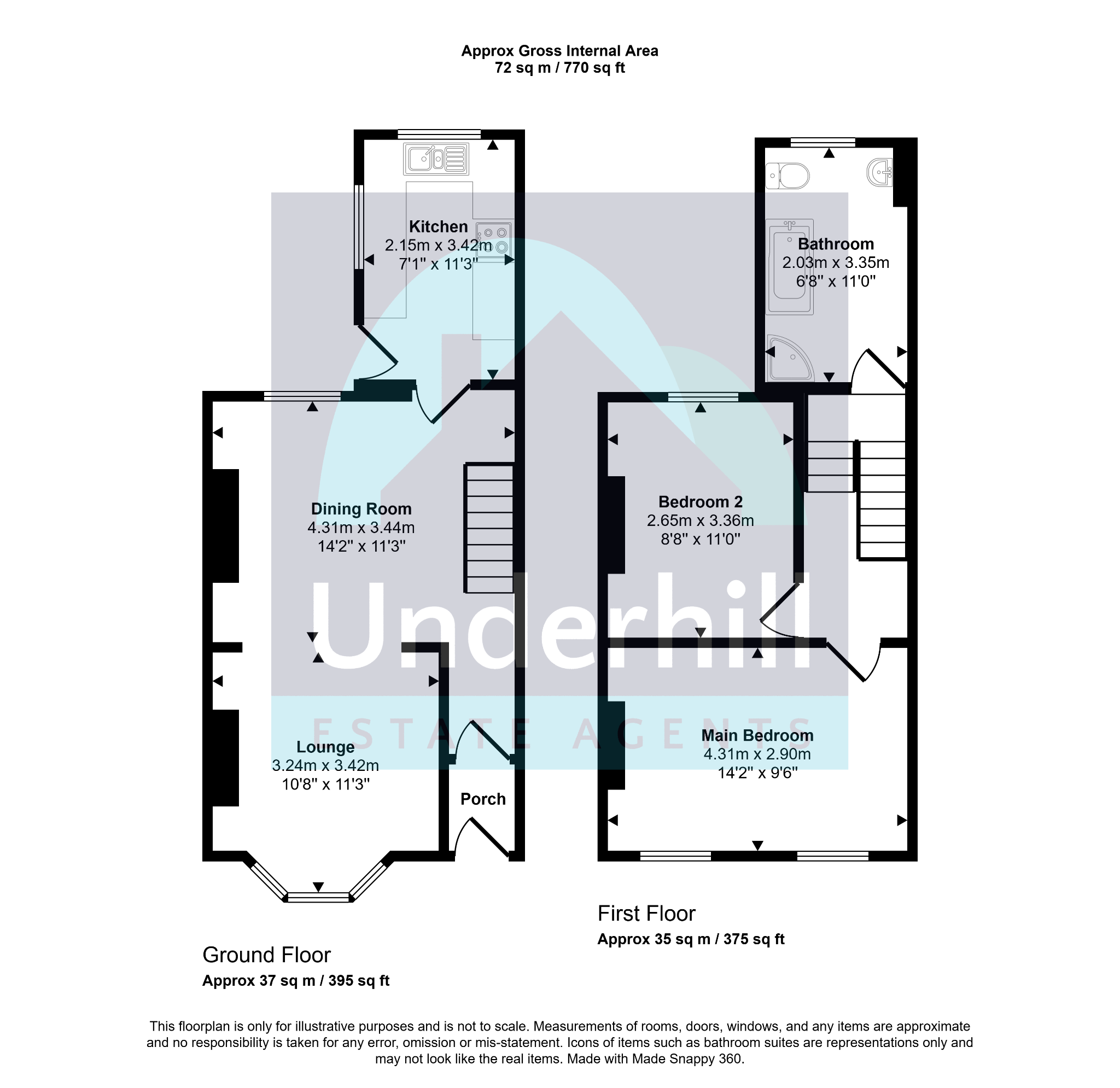 First Floor Landing: Access to loft, ceiling light point and carpeted flooring. Doors leading to bedroom one, bedroom two, bedroom and family bathroom.