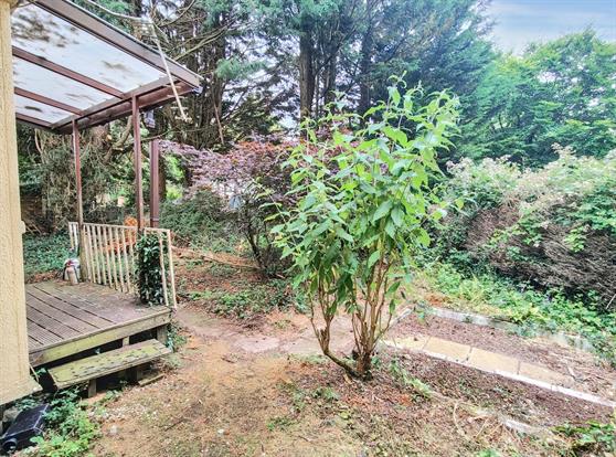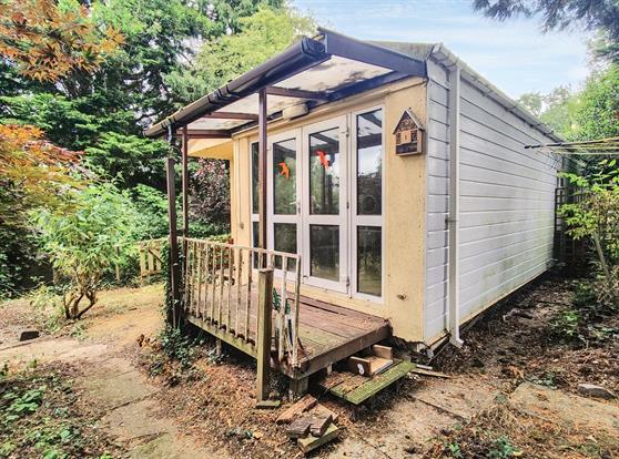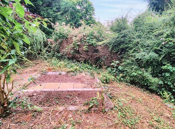 Pitch: Driveway to garage, private plot, laid to lawn. Garden shed, mature trees and shrubs.