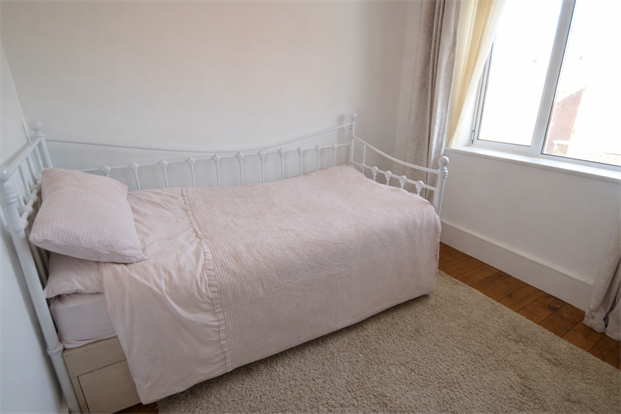 Single bedroom with UPVC double glazed window to side, boiler, ceiling light point and wooden floorboards.