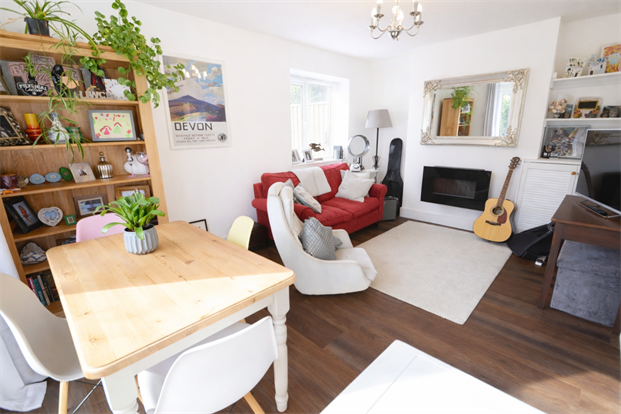 A good sized living room with UPVC double glazed window to rear and sliding door to side giving access to the garden, gas fireplace, ceiling light point, Virgin broadband and karndean flooring.