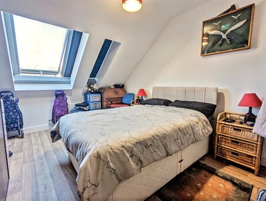 A large double bedroom with plenty of space for bedroom furniture, a large built-in wardrobe, wood effect flooring, 2 electronic opening windows providing natural light.