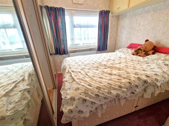 Double bedroom with coving, upvc double glazed window, single radiator, built in bedroom furniture and carpeted flooring.