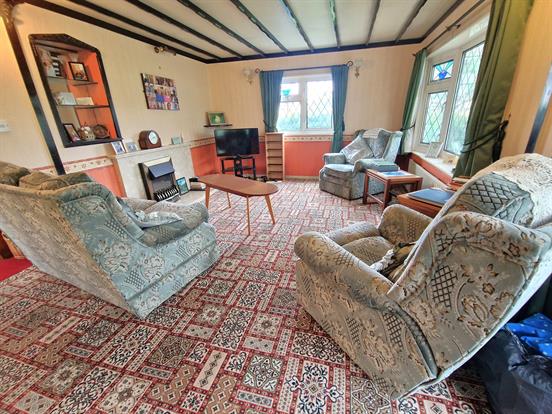 Spacious living room with upvc double glazed bay window, TV socket, electric fire, single radiator and carpeted flooring.
