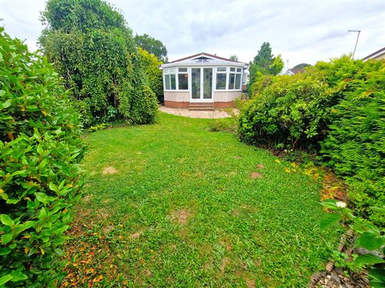 A private and enclosed garden with patio and mature hedges and trees. Gated side access.