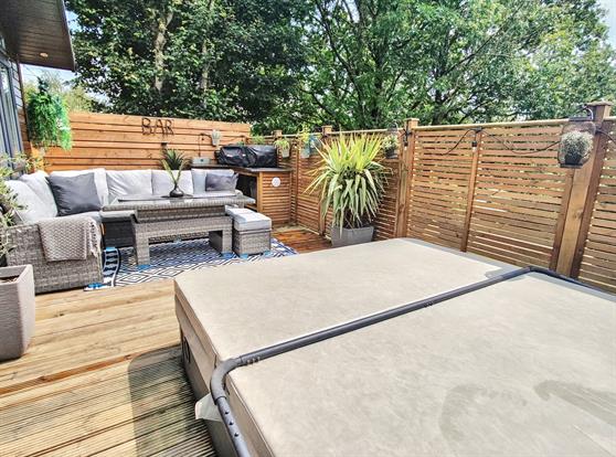 Outside: A spacious and super sunny south facing sun deck that comes complete with a private (screened) sunken Hydropool Hot Tub and an outside granite kitchen with electricity and lighting perfect for relaxing and al-fresco dining. There is also an outside granite kitchen with electricity and lighting. There is also private parking space directly outside the property. Perfectly positioned just a stone's throw away from all the resort's fantastic amenities.