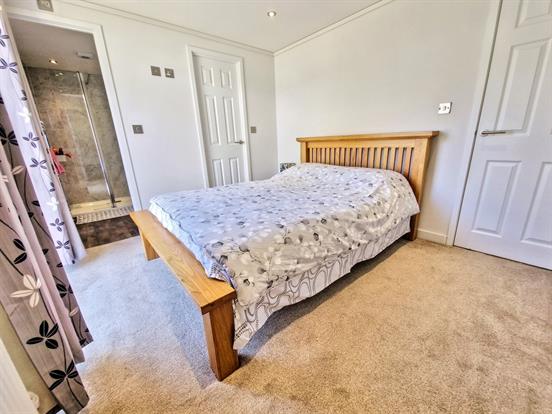 Master Bedroom: Double bedroom with downlights, UPVC double glazed window to side, radiator, walk in wardrobe and carpeted flooring. Door leading to: