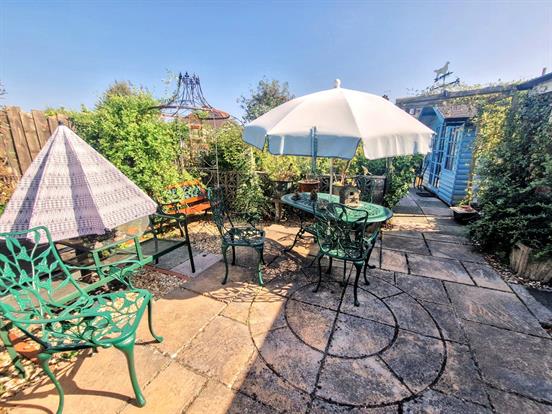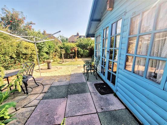 Front and rear gardens with well-established plants and shrubs. A large summerhouse, large driveway and garage.