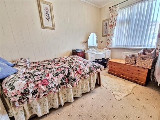 Carpeted floor, integrated wardrobes and space for additional bedroom furniture. A window views to the rear of the property.