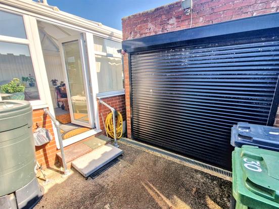Fitted with an electric door and concealed behind a set of gates. Access from the driveway via the gates or from the rear garden via a side door.